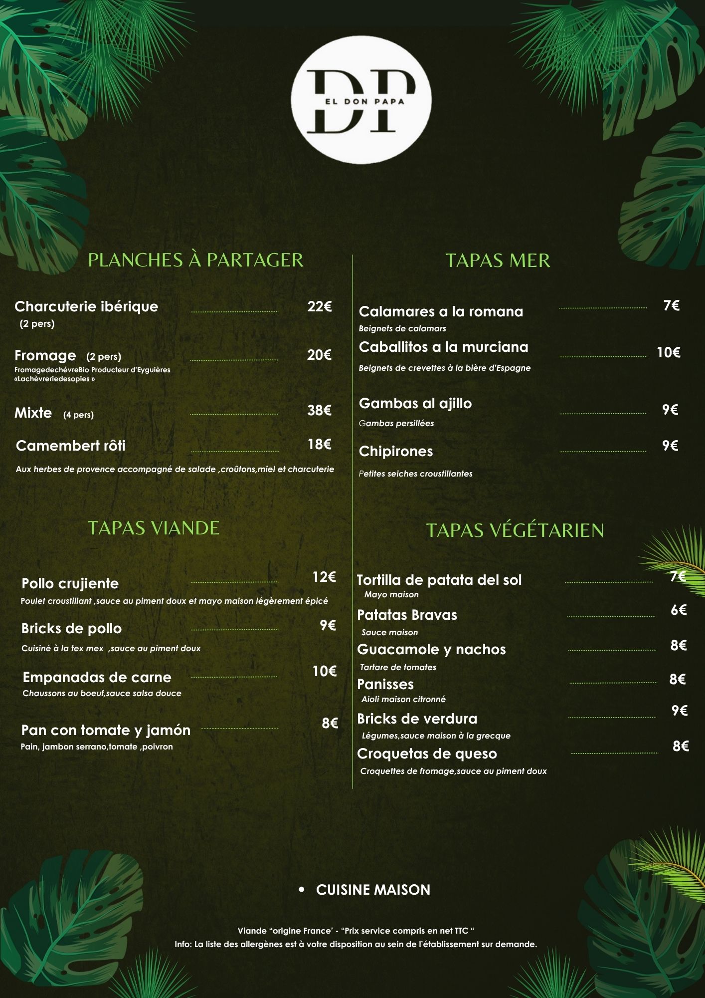 Chaque recette est élaborée avec des produits frais et de saison, inspirée des saveurs espagnoles ,latines et du monde, dans une ambiance conviviale et chaleureuse.